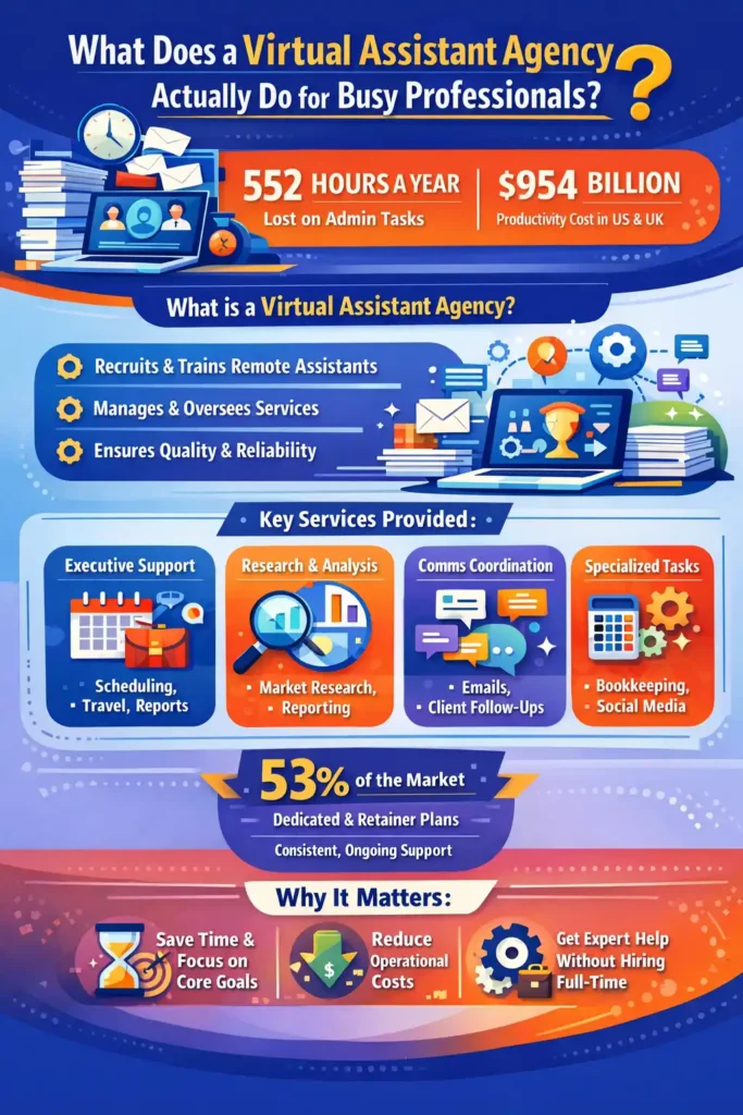 Infographic of What Does a Virtual Assistant Agency Actually Do for Busy Professionals